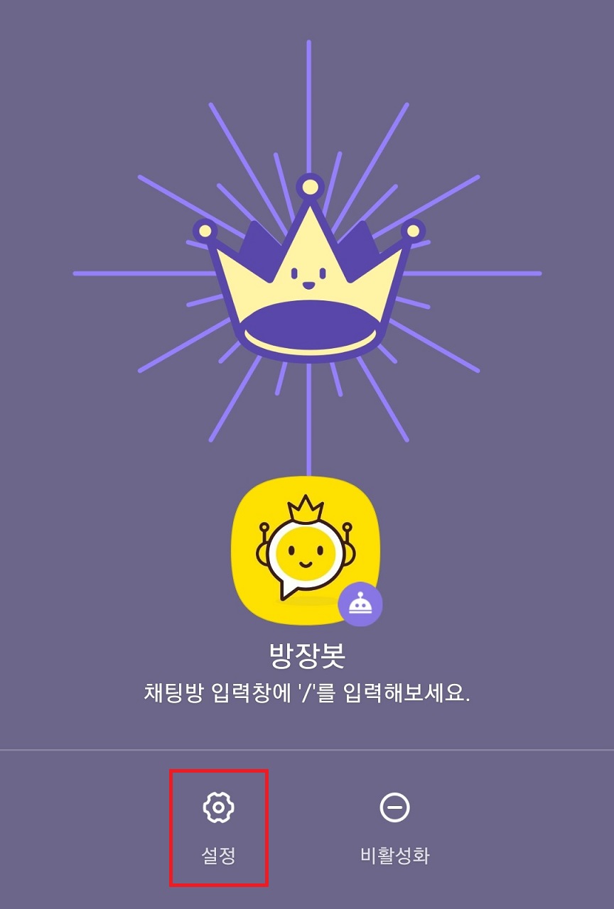 6. 방장봇 프로필과 같은 화면이 생기는데 여기서 설정을 클릭한다.