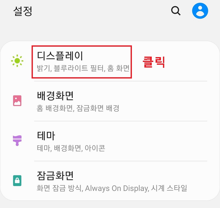 이렇게 어두운 화면으로 변경되면 갤럭시 핸드폰 배터리 절약이 된다.