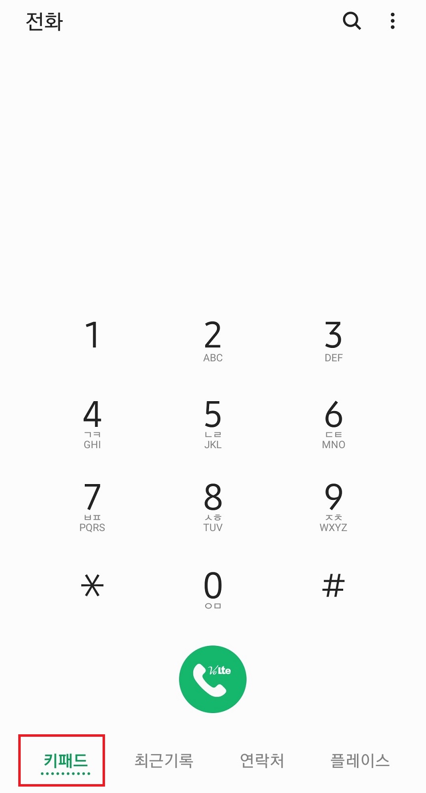 1. 갤럭시 휴대폰 전화화면에서 키패드를 누를수 있도록 키패드 탭으로 이동한다.