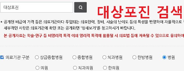 나는 의료기관 구분은 병원을 선택, 지역은 서울시 강남구를 선택해보겠다.