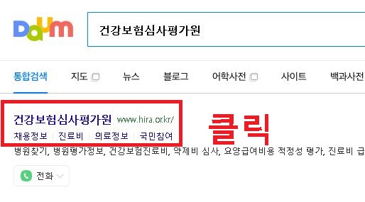 1. 포털에서 건강보험심사평가원을 검색해서 홈페이지로 접속한다.
