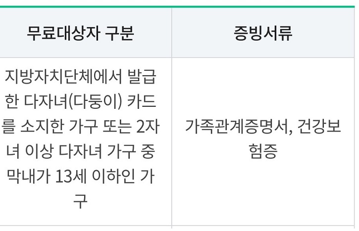 다자녀 무료 혜택에 필요한 자세한 것은 해당 홈페이지에 방문해서 2자녀 가구인 것과 증빙서류 등을 확인해야 한다.