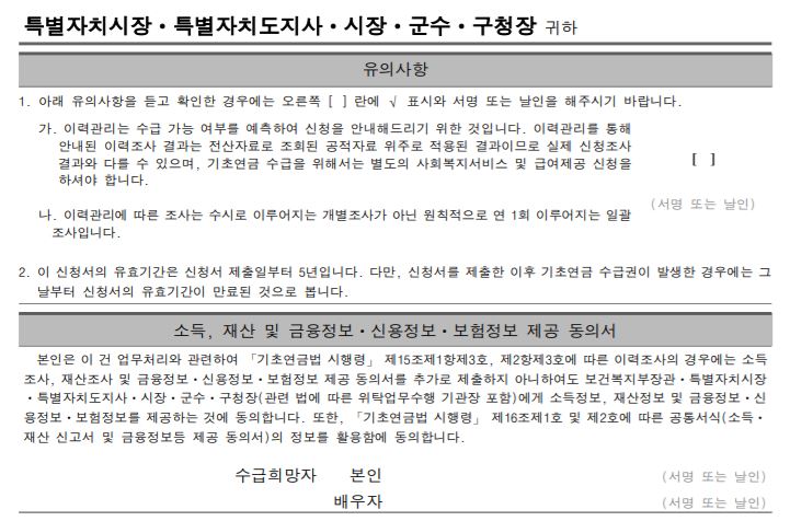 - 대리인 : 배우자, 형제자매, 친족, 사회복지시설장 등