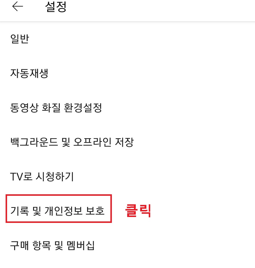 3. 설정 페이지에서 기록 및 개인정보를 클릭한다.