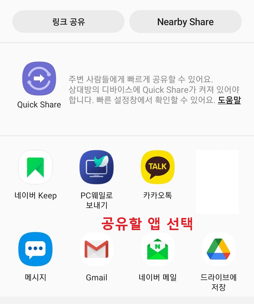 9. 아래쪽에 갤럭시 통화녹음 파일을 공유할 수 있는 앱들이 생기는데 이중 선택하여 실행한다.