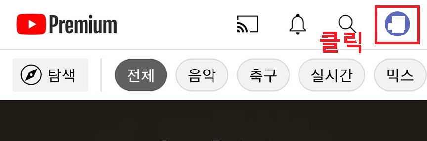 1. 스마트폰 유튜브 우측 상단에 아이디 부분을 클릭한다.