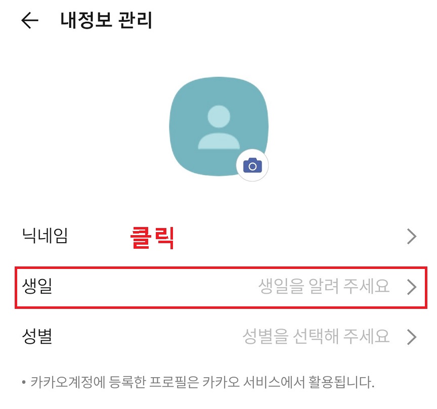 5. 내정보 관리에서 닉네임 아래에 있는 생일 부분을 클릭한다.