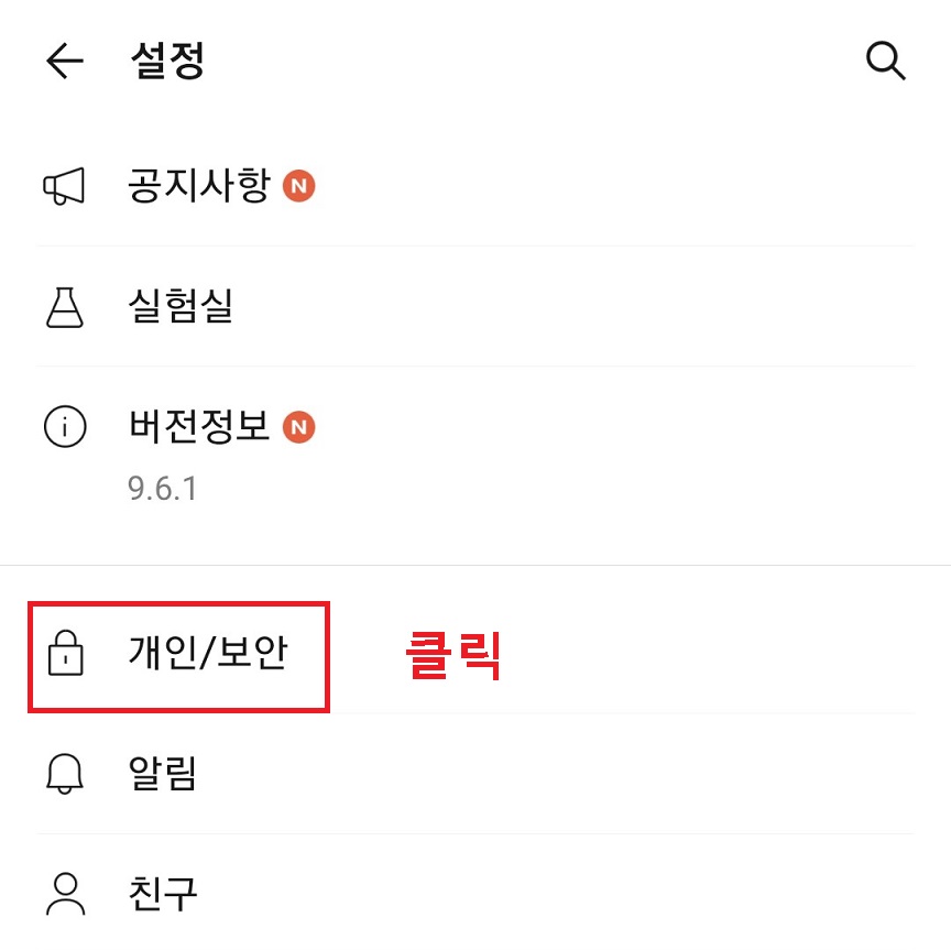 3. 개인/보안 페이지에서 카카오계정을 클릭한다.