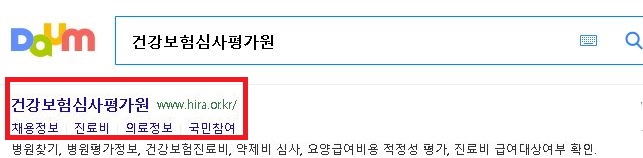1. 포털에서 건강보험심사평가원을 검색하여 홈페이지에 접속한다.