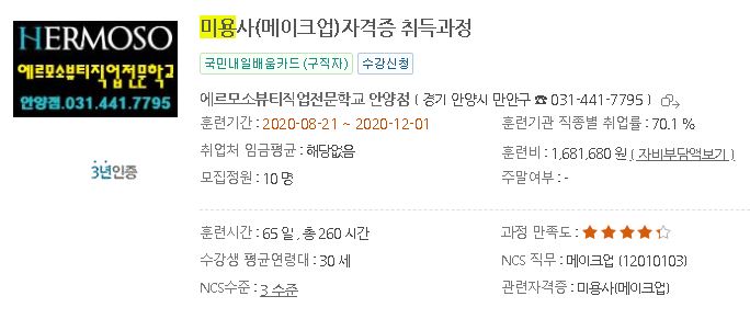취업률과 자비부담액은 고용노동부 직업훈련 포털 HRD-NET에서 교육과정 검색을 하면 확인할 수 있다.